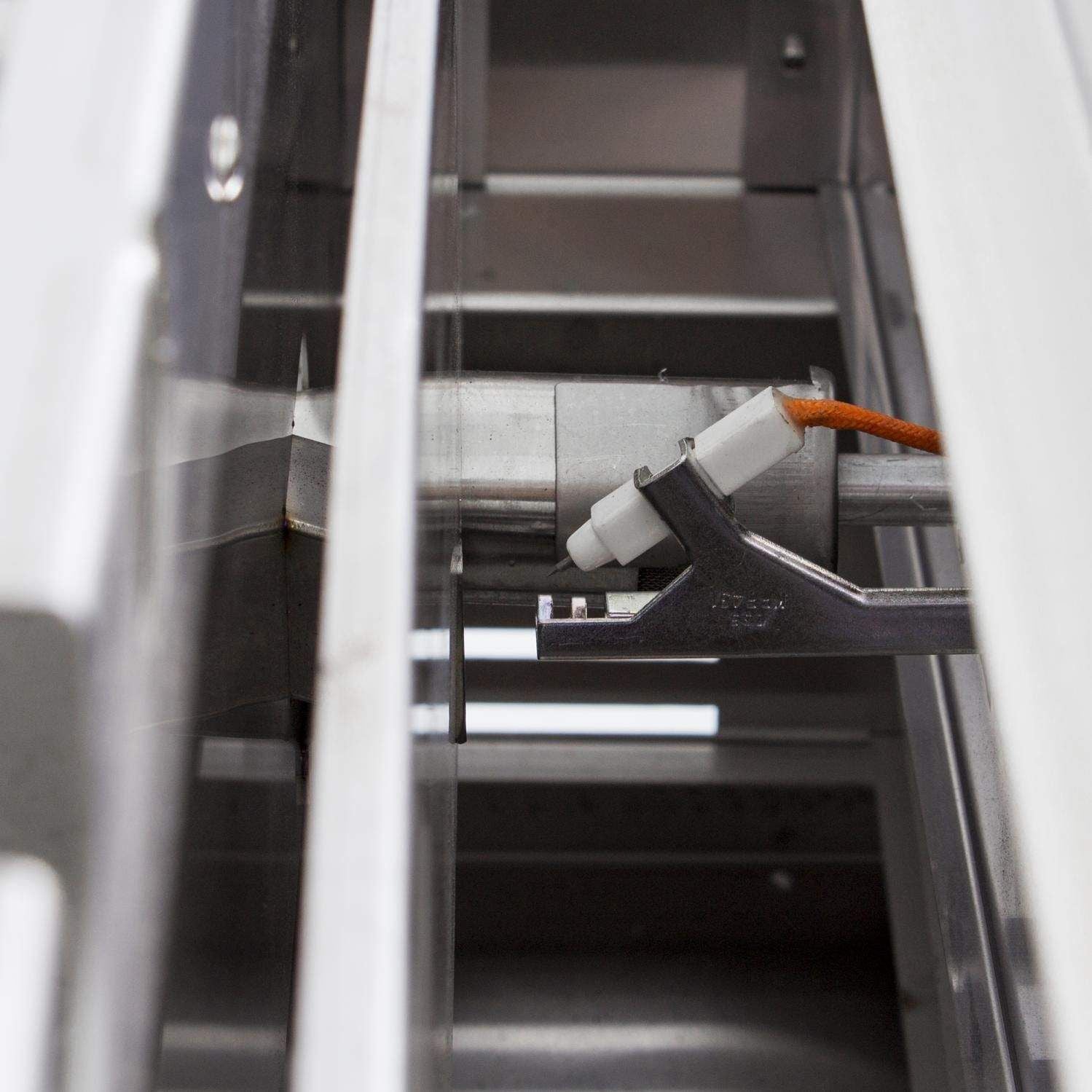 Push and turn flame-thrower primary ignition, backup flash tube secondary ignition and cross tubes ensure a steady, reliable flame with every start. A full-width grease trough with a hole in the center directs grease down to the drip tray below for easy cleaning.