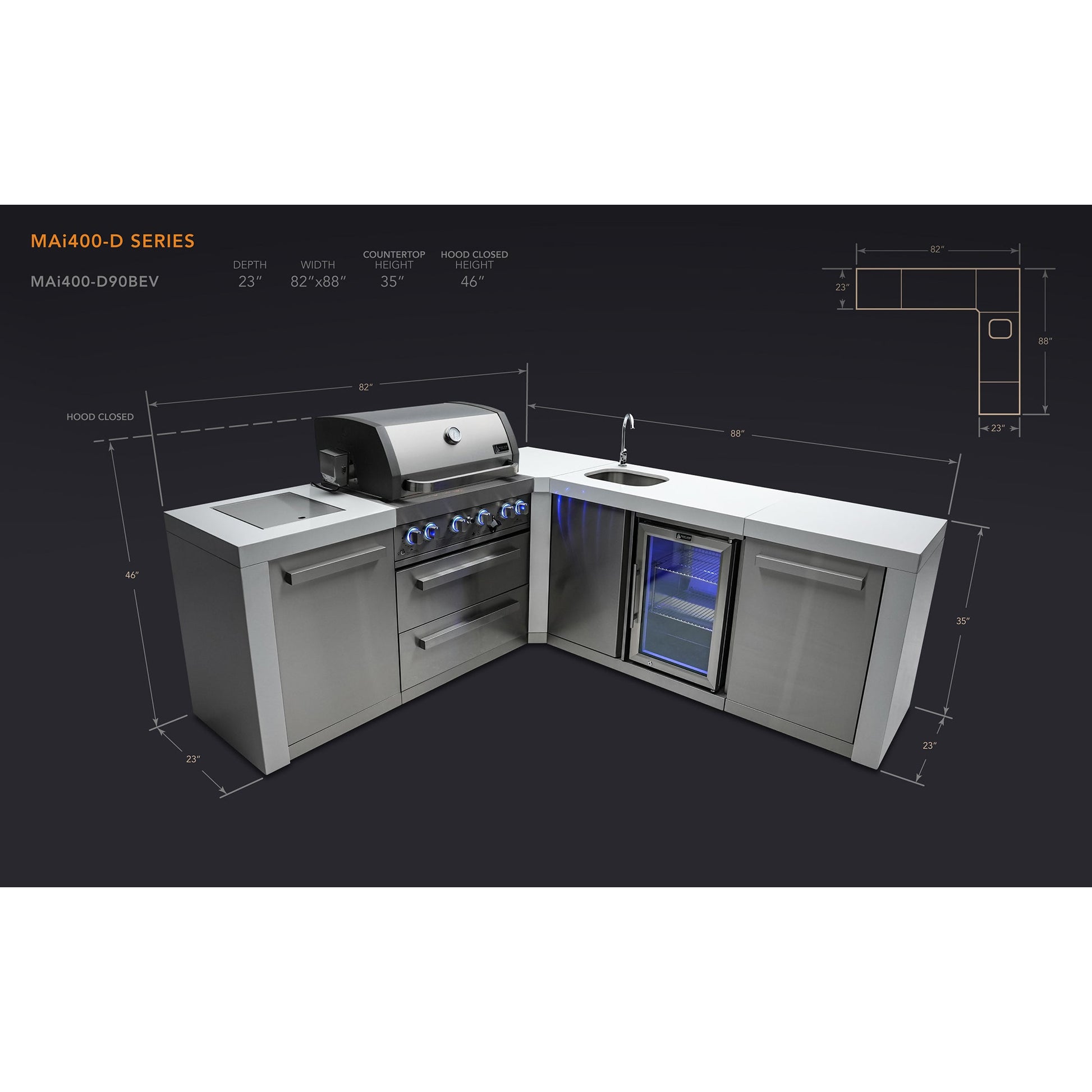 Mont Alpi 400 Deluxe BBQ Grill Island with L-Shape & Beverage Center - MAi400-D90BEV