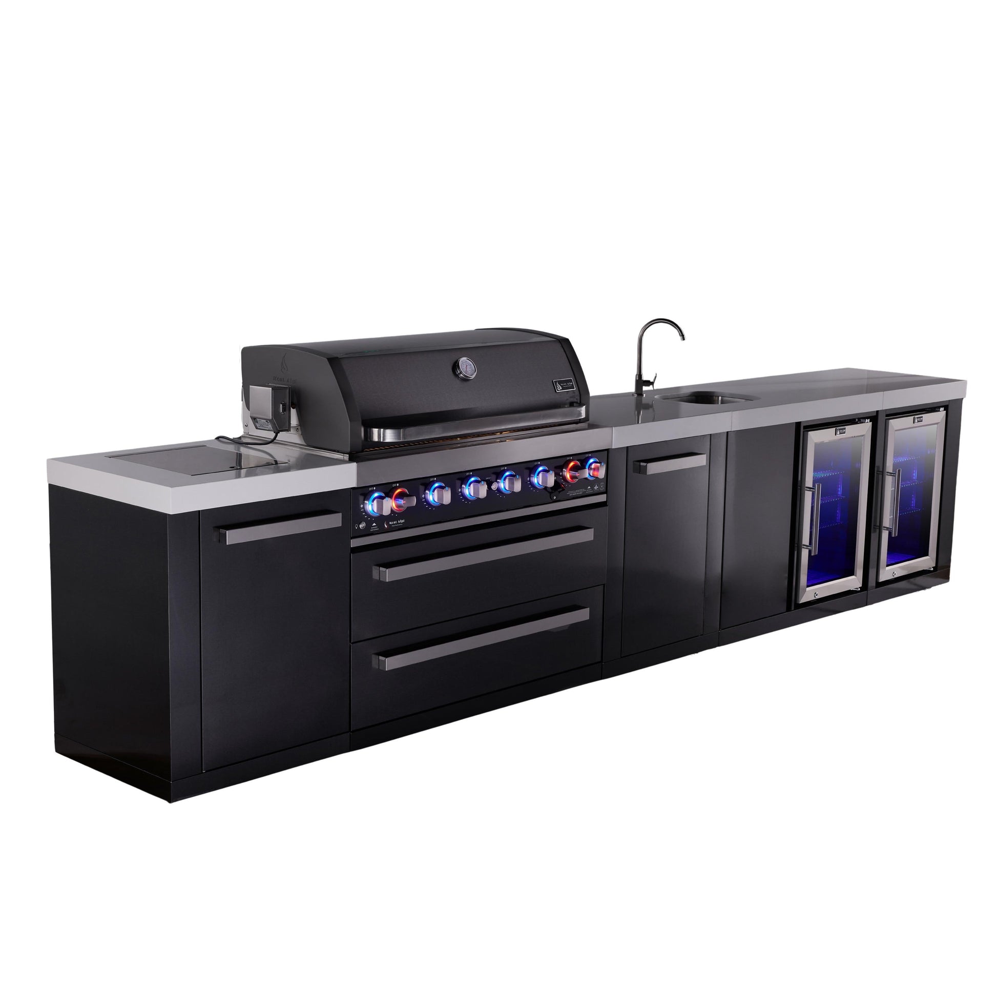 Mont Alpi 805 Black Stainless Steel BBQ Grill Island with Beverage Center, Extra Storage & Fridge - MAi805-BSSBEVFCXL