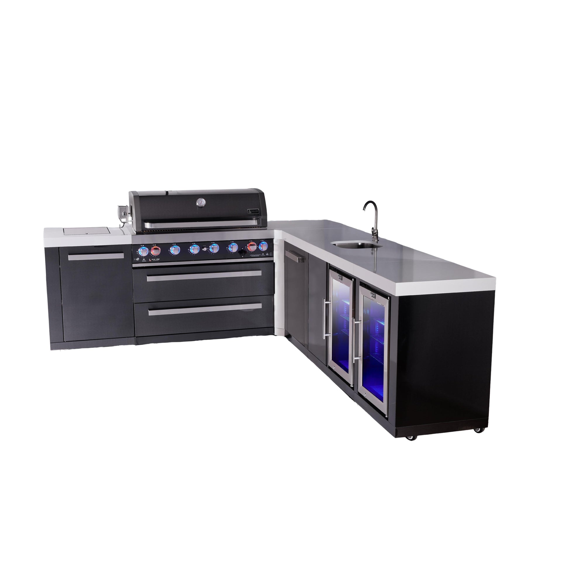 Mont Alpi 805 Black Stainless Steel BBQ Grill Island with L-Shape, Beverage Center, Extra Storage & Fridge - MAi805-BSS90BEVFCXL